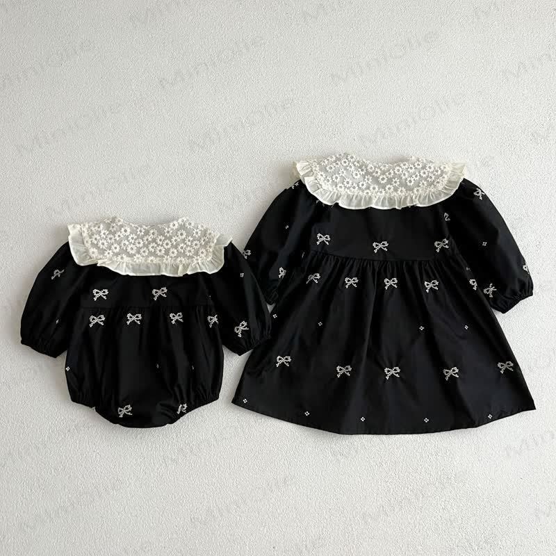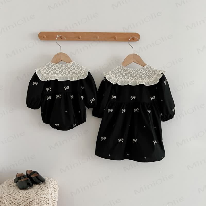 Baby Toddler Black Bows Embroidered Bodysuit Dress